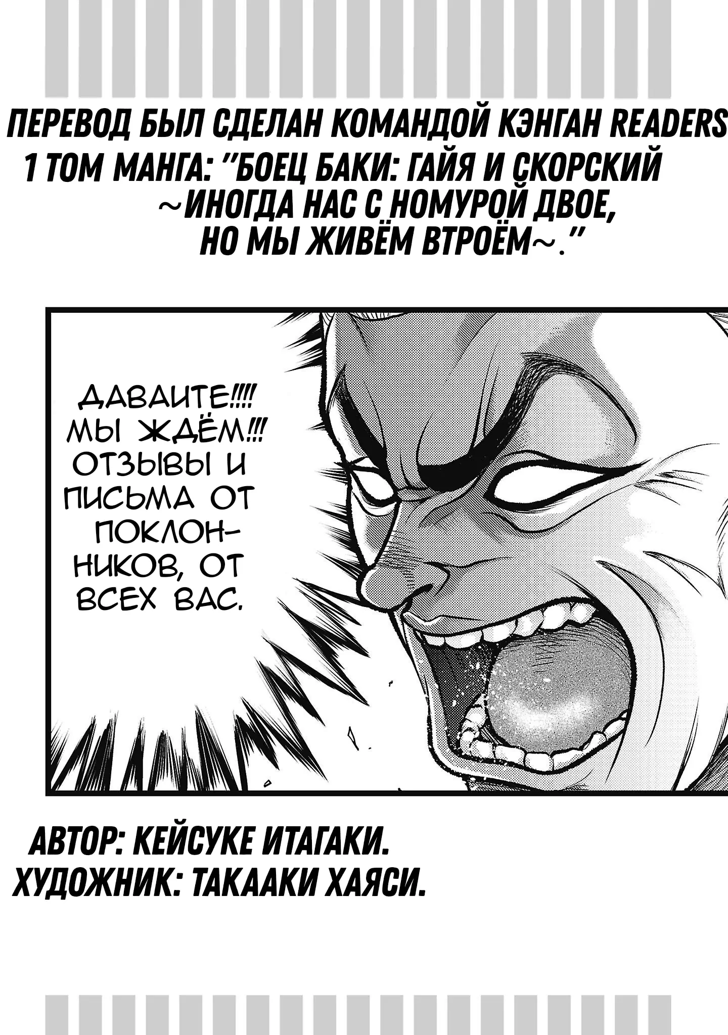 Боец Баки: Гайя и Сикорский ~Иногда нас с Номурой двое, но мы живём втроём~. (Baki Gaiden - Gaia to Sikorsky — Tokidoki Nomura Futari Dakedo Sannin-gurashi . Keisuke Itagaku) - 8.1 Глава