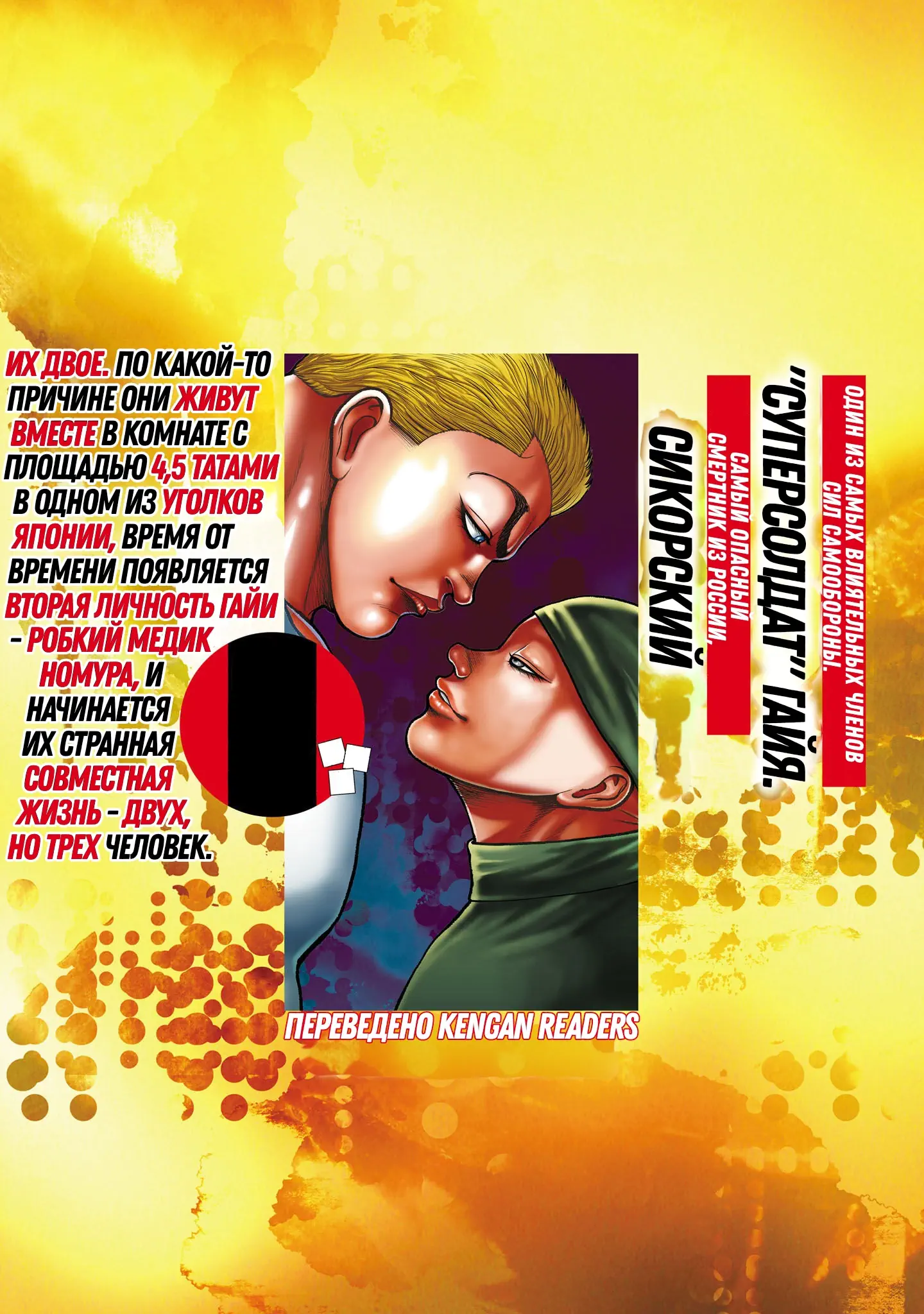 3. Боец Баки: Гайя и Сикорский ~Иногда нас с Номурой двое, но мы живём втроём~. (Baki Gaiden - Gaia to Sikorsky — Tokidoki Nomura Futari Dakedo Sannin-gurashi . Keisuke Itagaku)