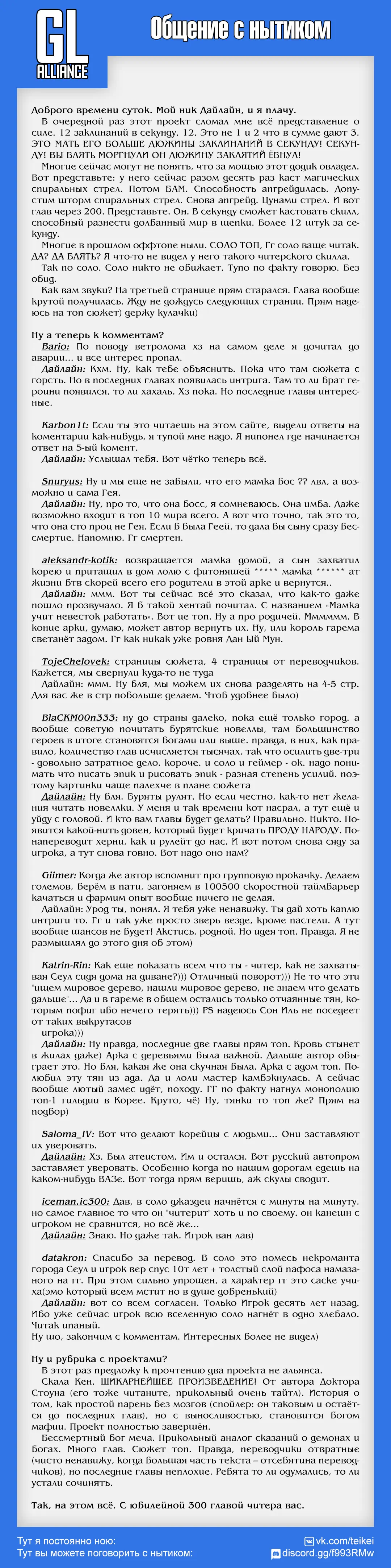 Комментарии "300 Глава"