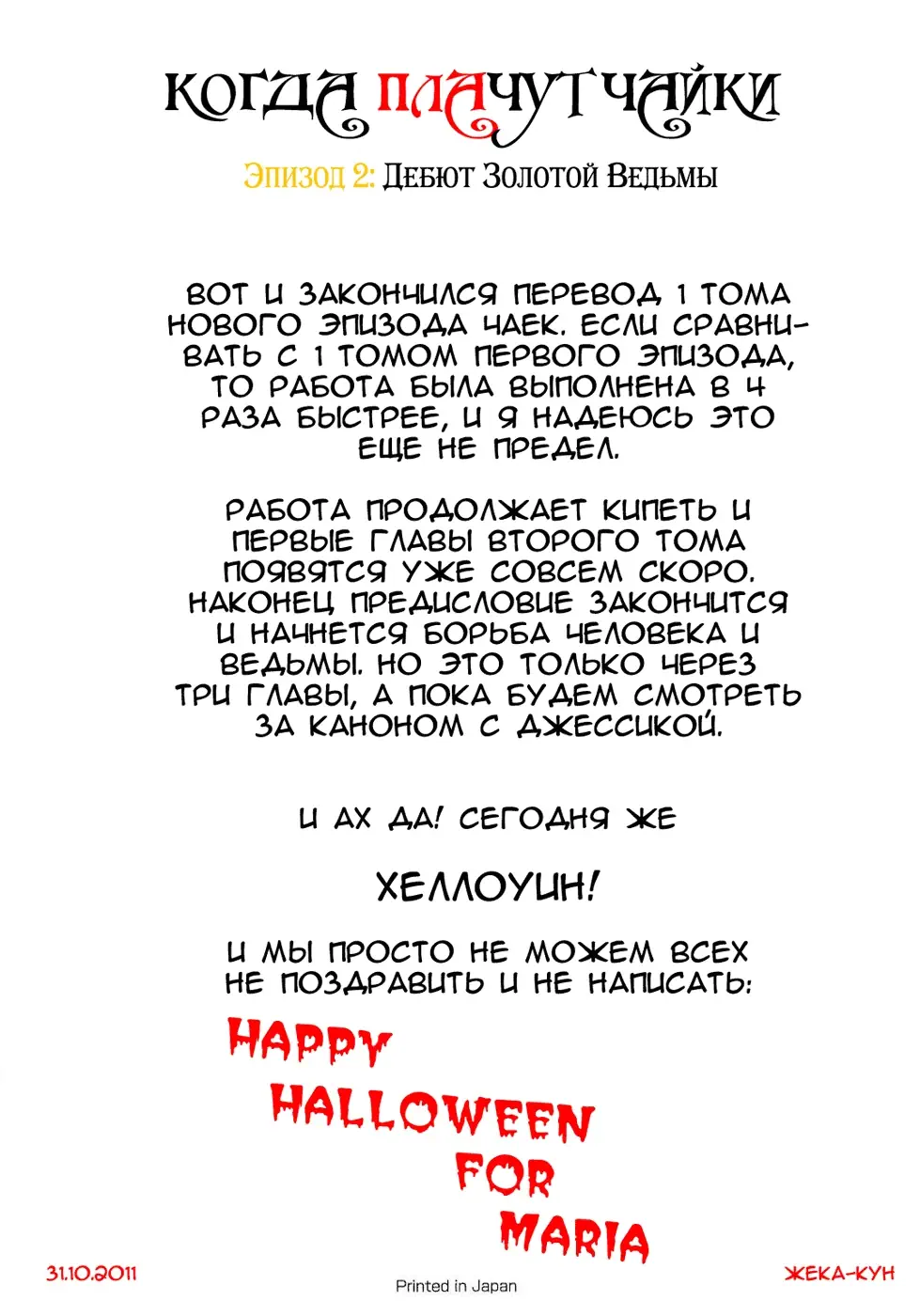 Когда плачут чайки - Эпизод 2: Дебют Золотой Ведьмы (Umineko no Naku Koro ni - Episode 2: Turn of the Golden Witch) - 6 Глава