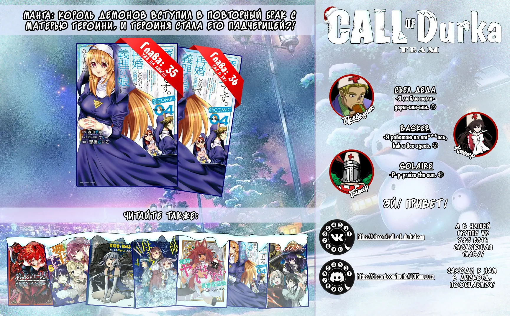 Король демонов вступил в повторный брак с матерью героини, и героиня стала его падчерицей (Onna Yuusha no Hahaoya to Saikon Shita no de, Onna Yuusha ga Giri no Musume ni Narimashita) - 35 Глава