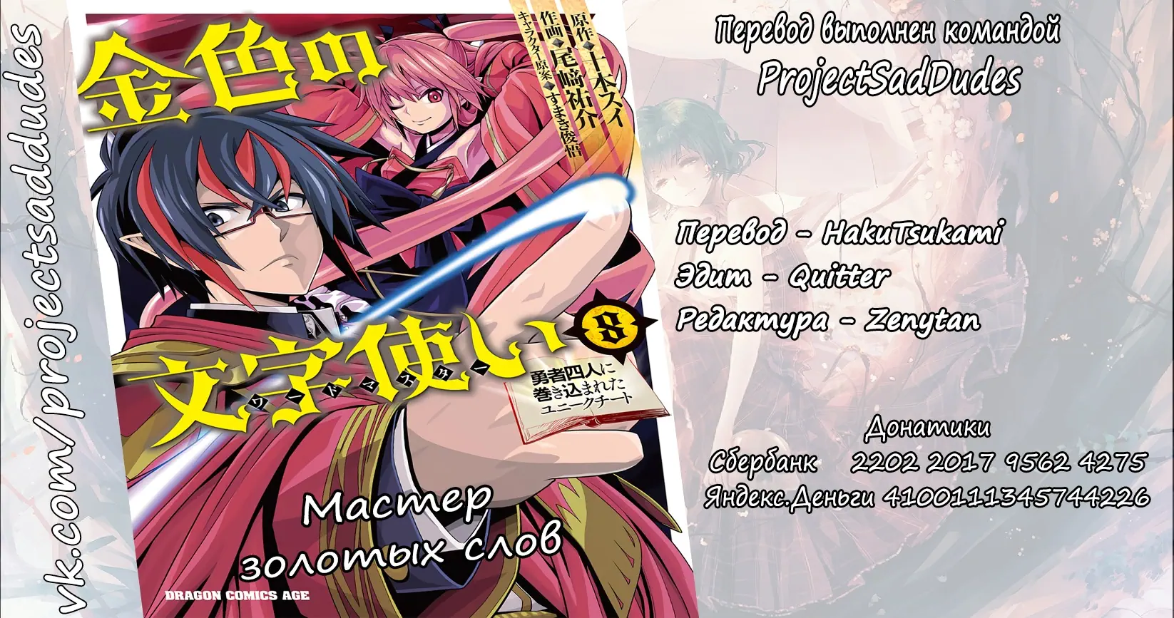 3. Мастер золотых слов: Четыре героя и Наблюдатель с Уникальным читом (Konjiki no Moji Tsukai - Yuusha Yonin ni Makikomareta Unique Cheat)