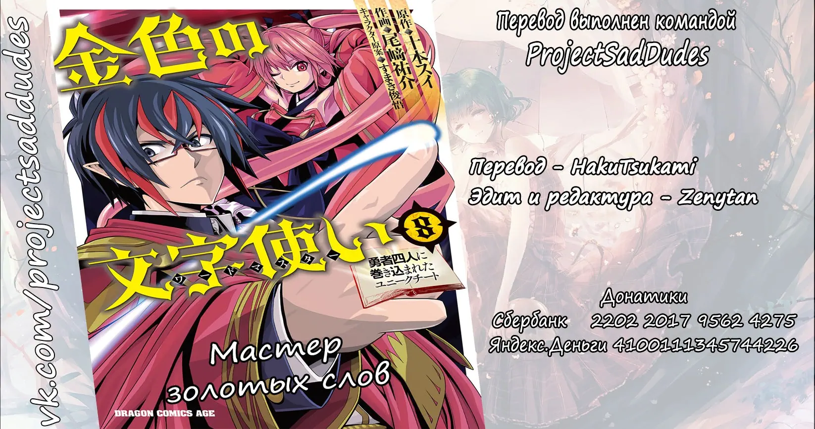 3. Мастер золотых слов: Четыре героя и Наблюдатель с Уникальным читом (Konjiki no Moji Tsukai - Yuusha Yonin ni Makikomareta Unique Cheat)