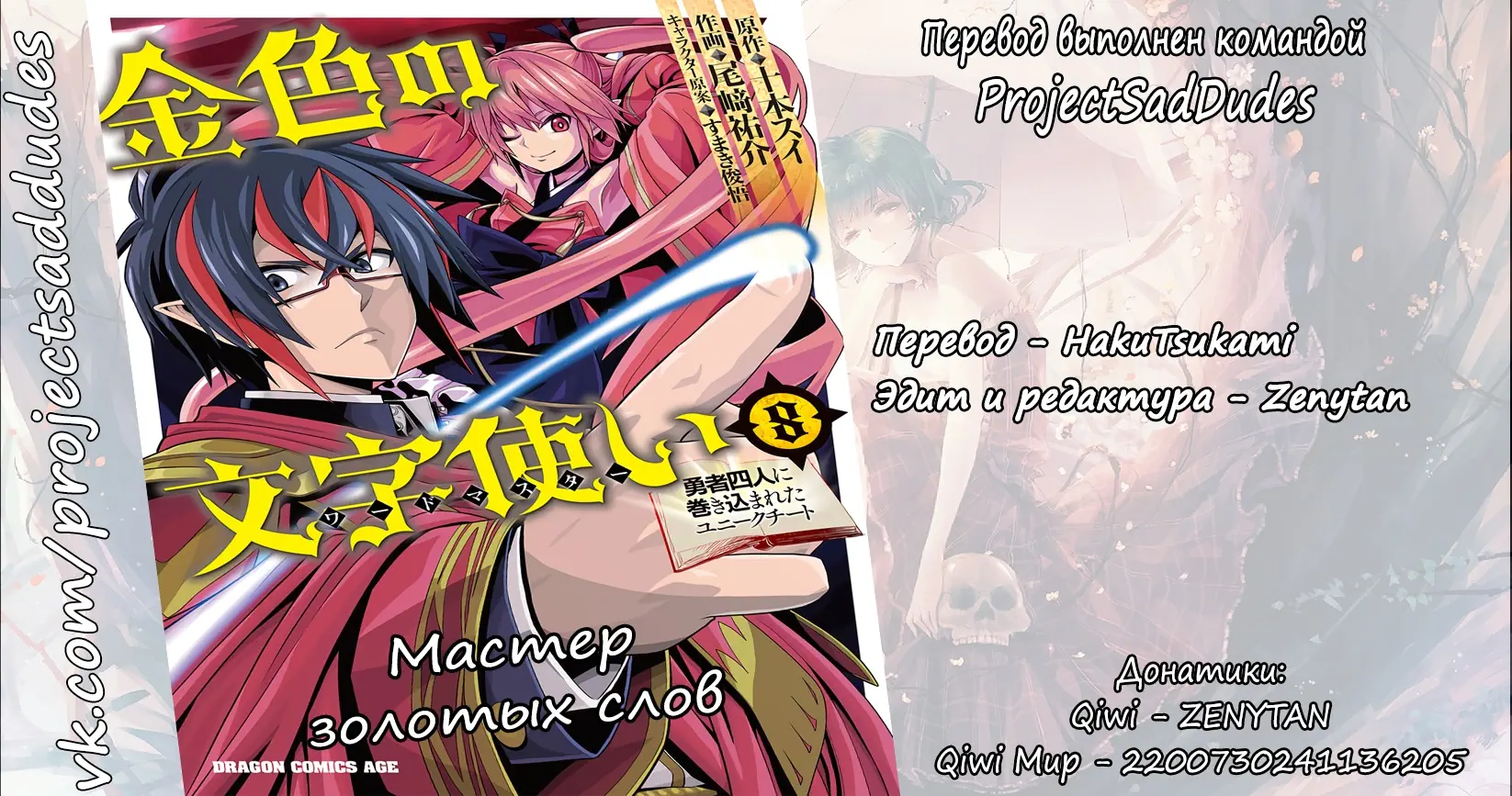 3. Мастер золотых слов: Четыре героя и Наблюдатель с Уникальным читом (Konjiki no Moji Tsukai - Yuusha Yonin ni Makikomareta Unique Cheat)