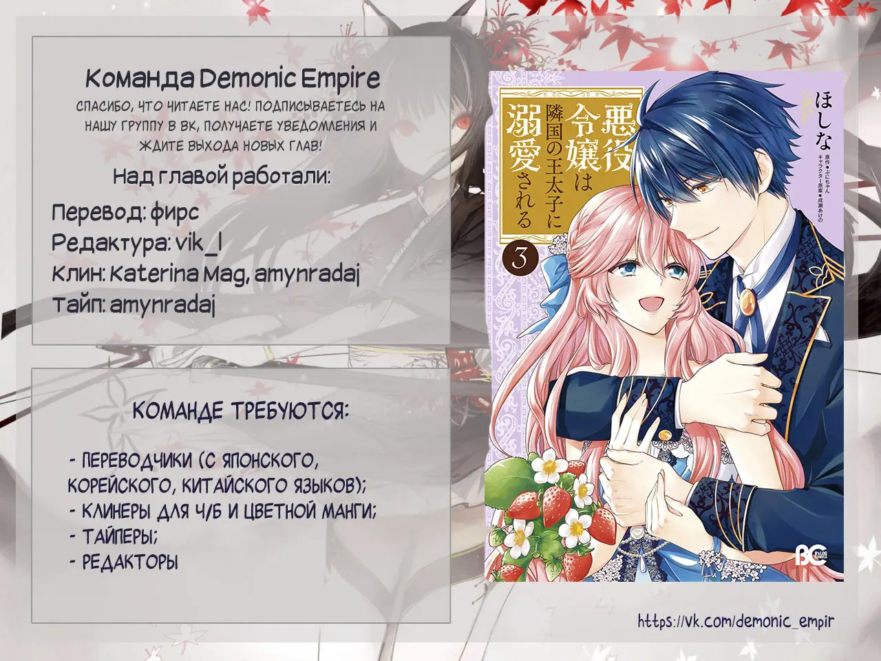 3. Принц соседней страны обожает злодейку (Akuyaku Reijou wa Ringoku no Outaishi ni Dekiai sareru)
