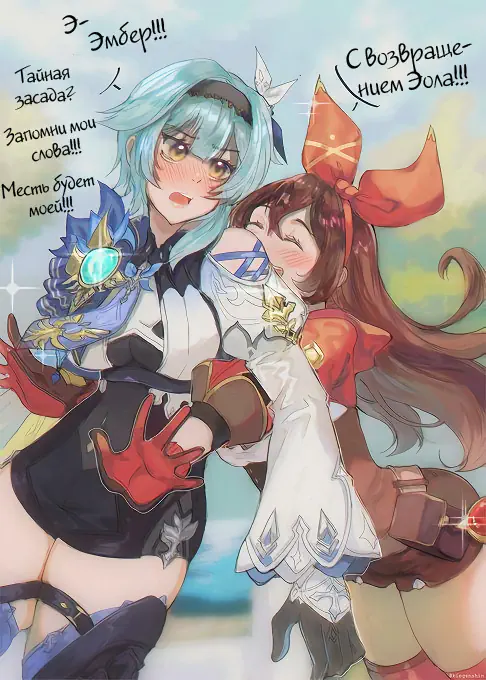 Время любви Эолы и Эмбер (Eula and Amber’s lovey-dovey time)